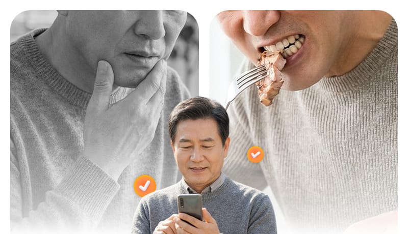 💡 Tip: 인공 치아는 신경이 없어 아픈 걸 잘 못 느껴요. 평소 양치를 꼼꼼히 하시고, 정기적으로 치과에 가셔서 스케일링을 받는 게 가장 중요합니다!
