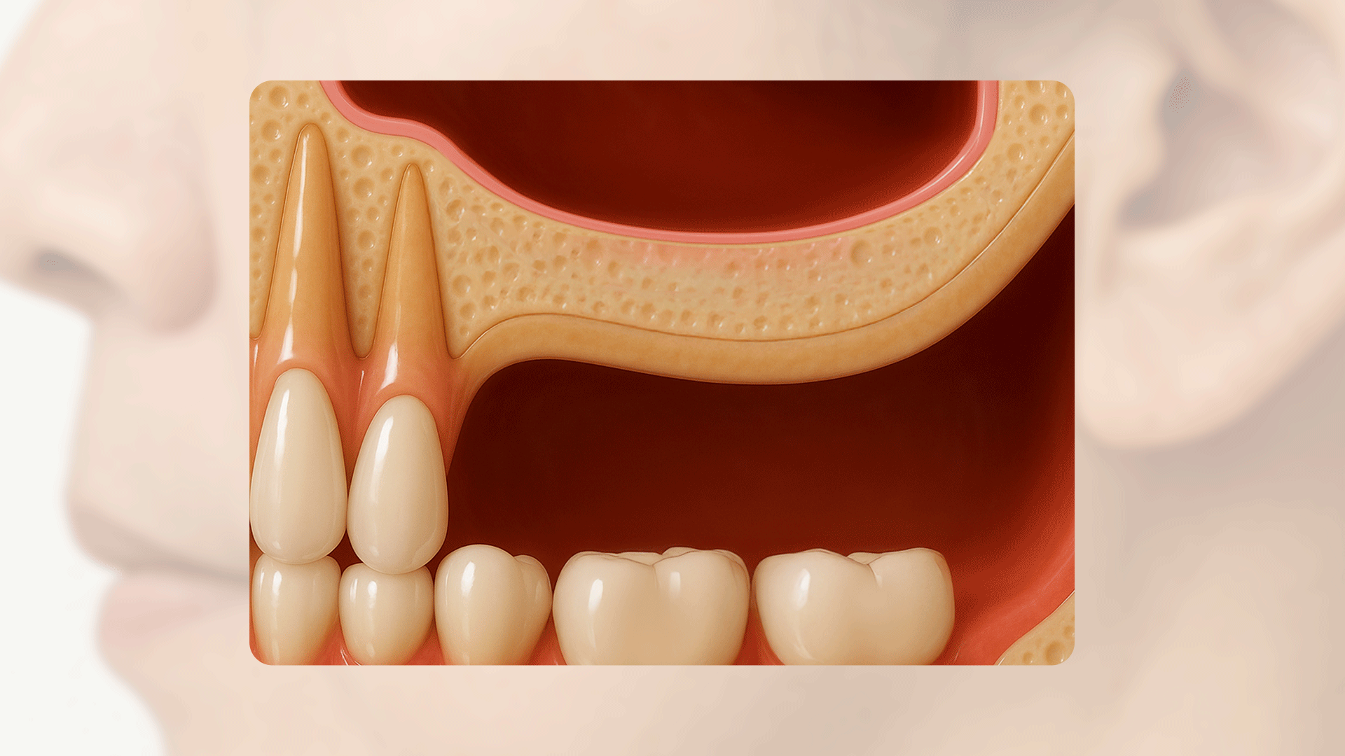 - 특히 위턱 앞니처럼 원래 뼈가 얇은 부위에서 뼈 소실이 더 심하게 나타납니다.