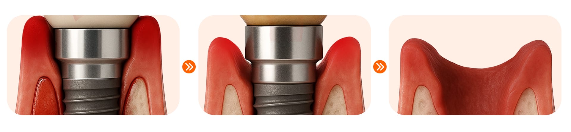 | 1개월 이내 | 혈괴 형성 및 초기 육아조직 대체 | 낮음 | 발치 후 즉시/조기 식립 가능 |